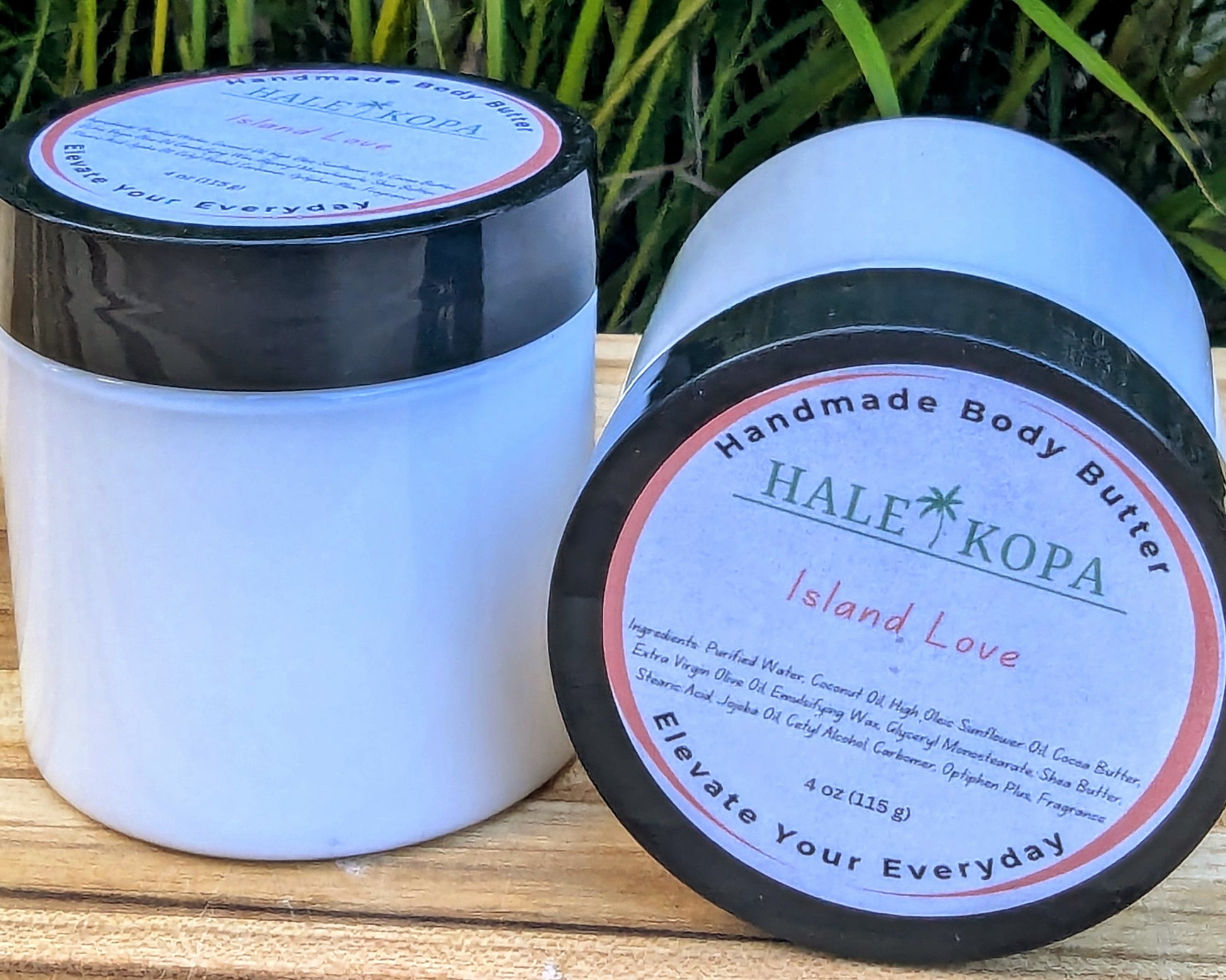 Embrace the warmth of 'Island Love' with our floral-fruity body butter. This enchanting blend features the sweet notes of peach and cherry blossom, gently intertwined with a hint of white jasmine. Let this blend transport you to a secluded island paradise, where love and beauty bloom in harmony.